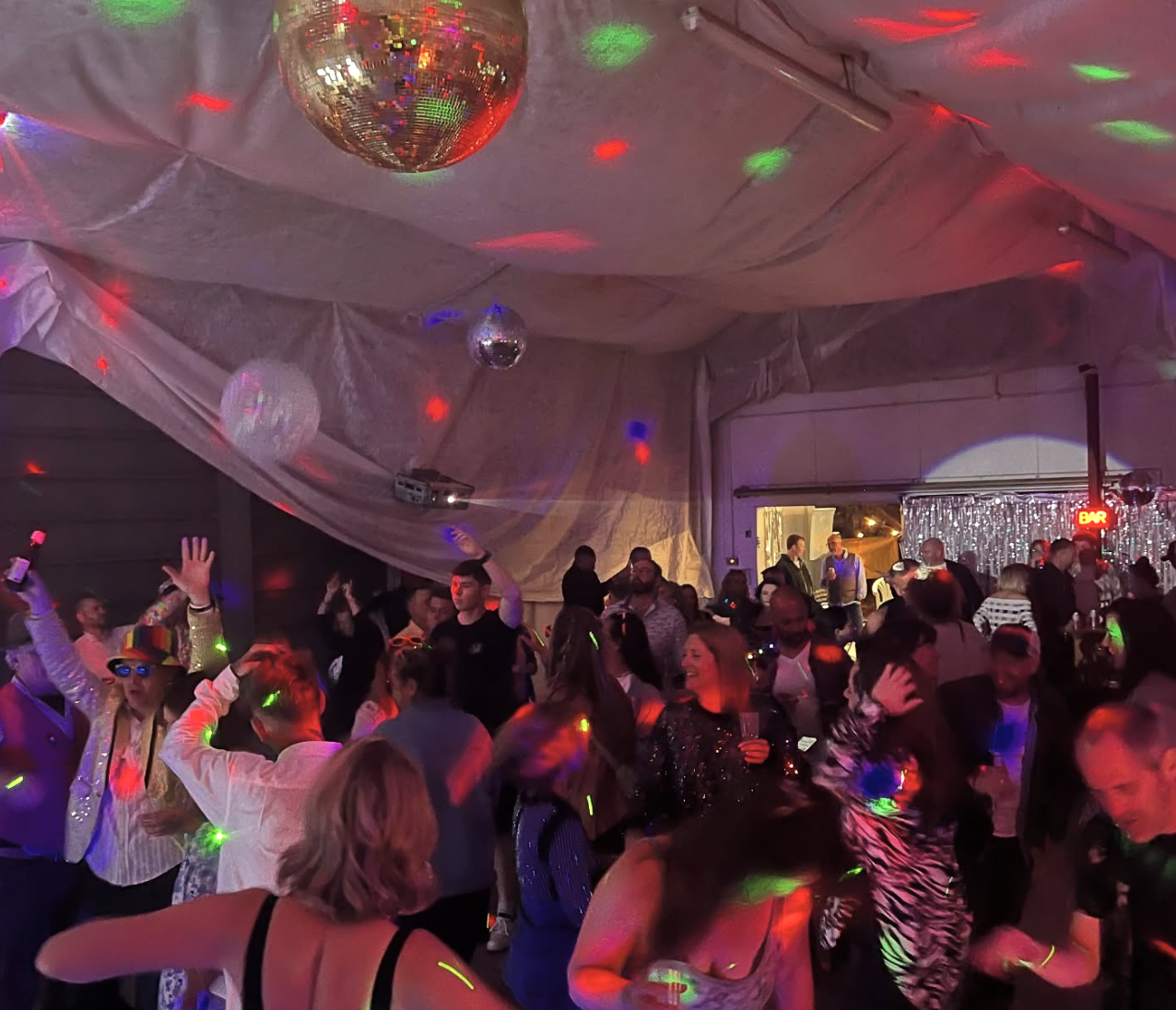 Transform your venue with sophisticated lighting design. From elegant uplighting to dynamic dancefloor effects, our bespoke setups create the perfect atmosphere for every moment. Disco Balls, Festoon Lights & DJ Lights - we have you covered.